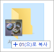 동일 드라이브에서 파일을 복사할 경우 복사할 폴더까지 드래그 한 이후 Ctrl 키를 누르면 복사로 변경됩니다.