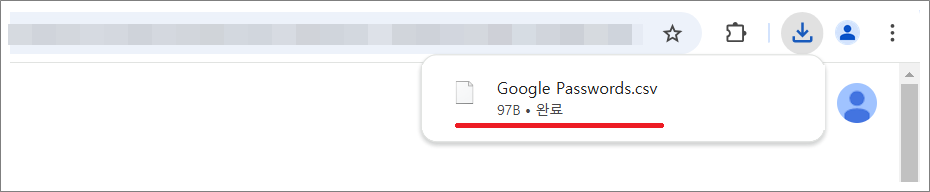 비밀번호 내보내기에서 파일 다운로드 선택합니다.