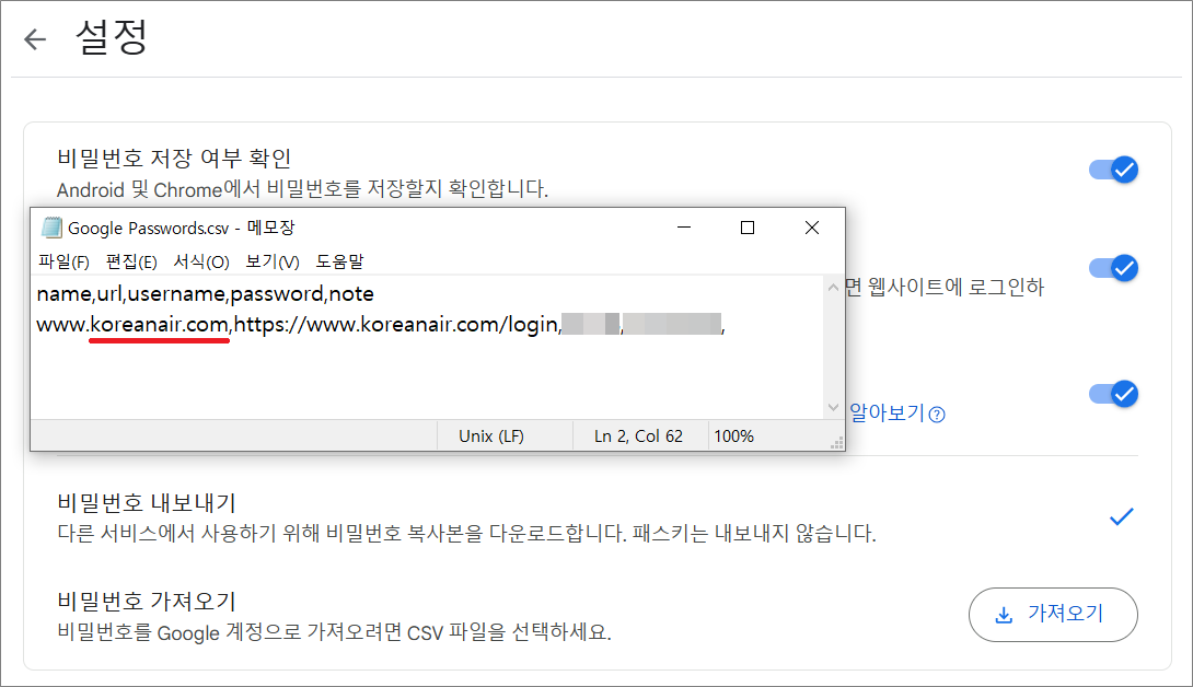 구글 크롬 비밀번호 내보내기 방법과 구글 비밀번호 백업하는 방법입니다.