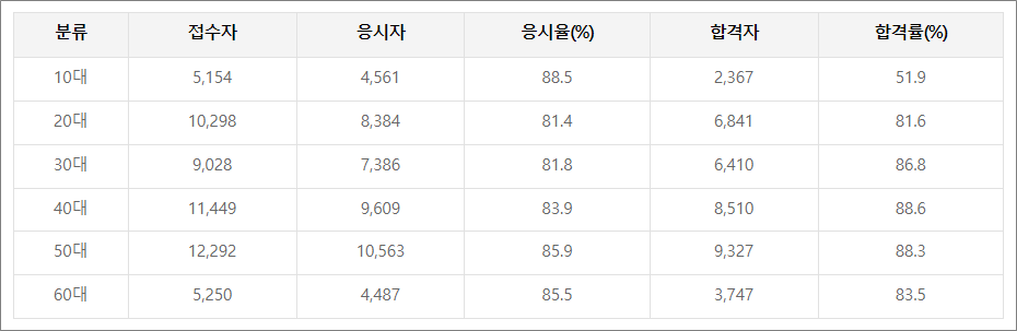 ❉. 굴착기운전기능사 필기시험 수험자 연령 합격률. (2023년 굴삭기)