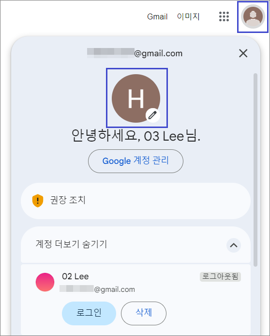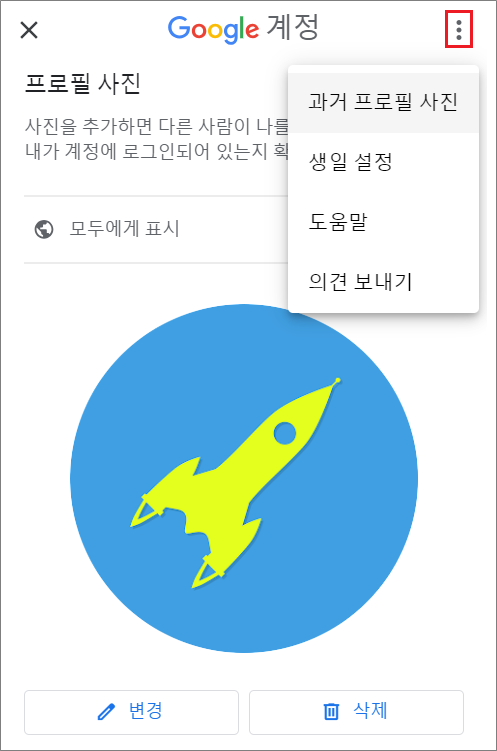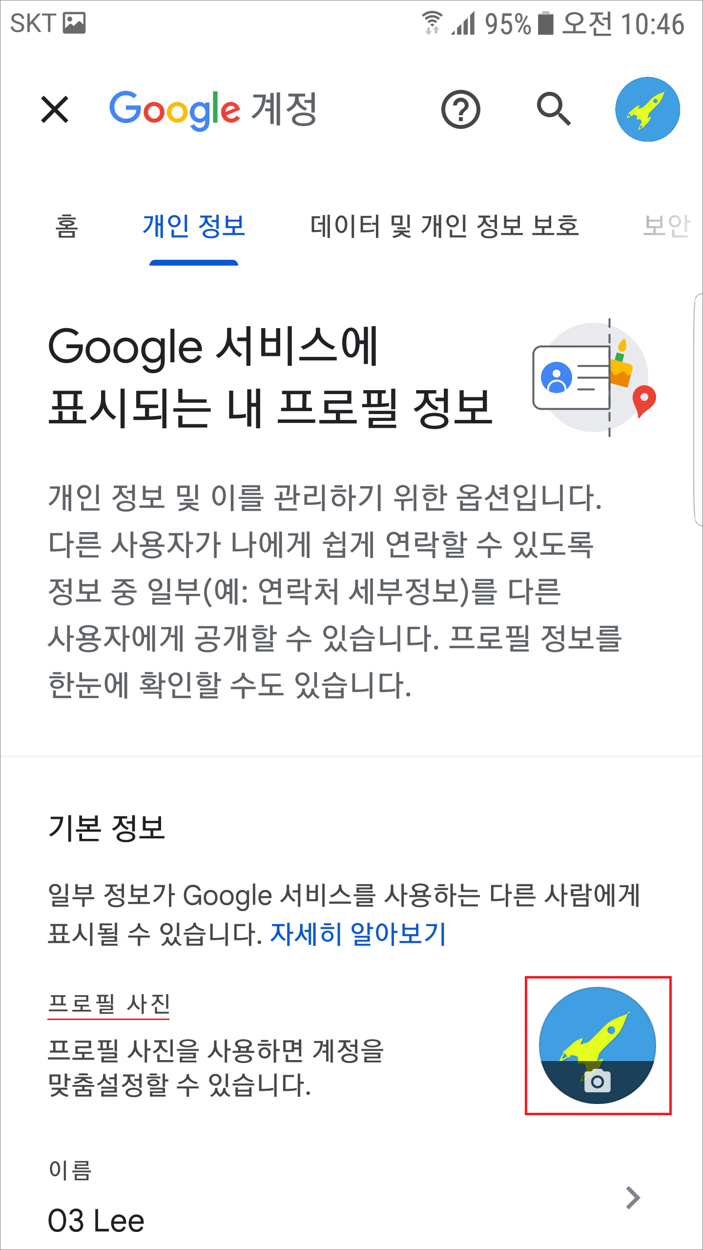 ⑧. 구글은 프로필 사진이 변경되었습니다.
