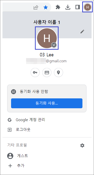 ⑩. 스마트폰에서 구글 프로필 사진을 변경했기 때문에 컴퓨터의 구글 및 크롬 프로필 사진도 동일하게 변경되었습니다.
