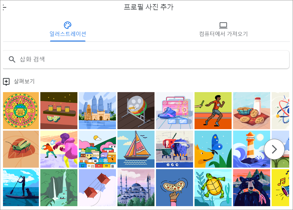 ④. 구글에서 제공하는 기본 프로필 사진을 선택할 수 있습니다.