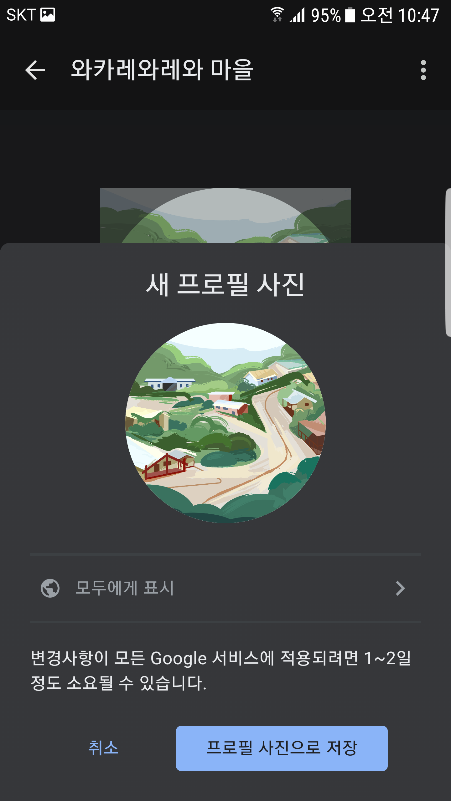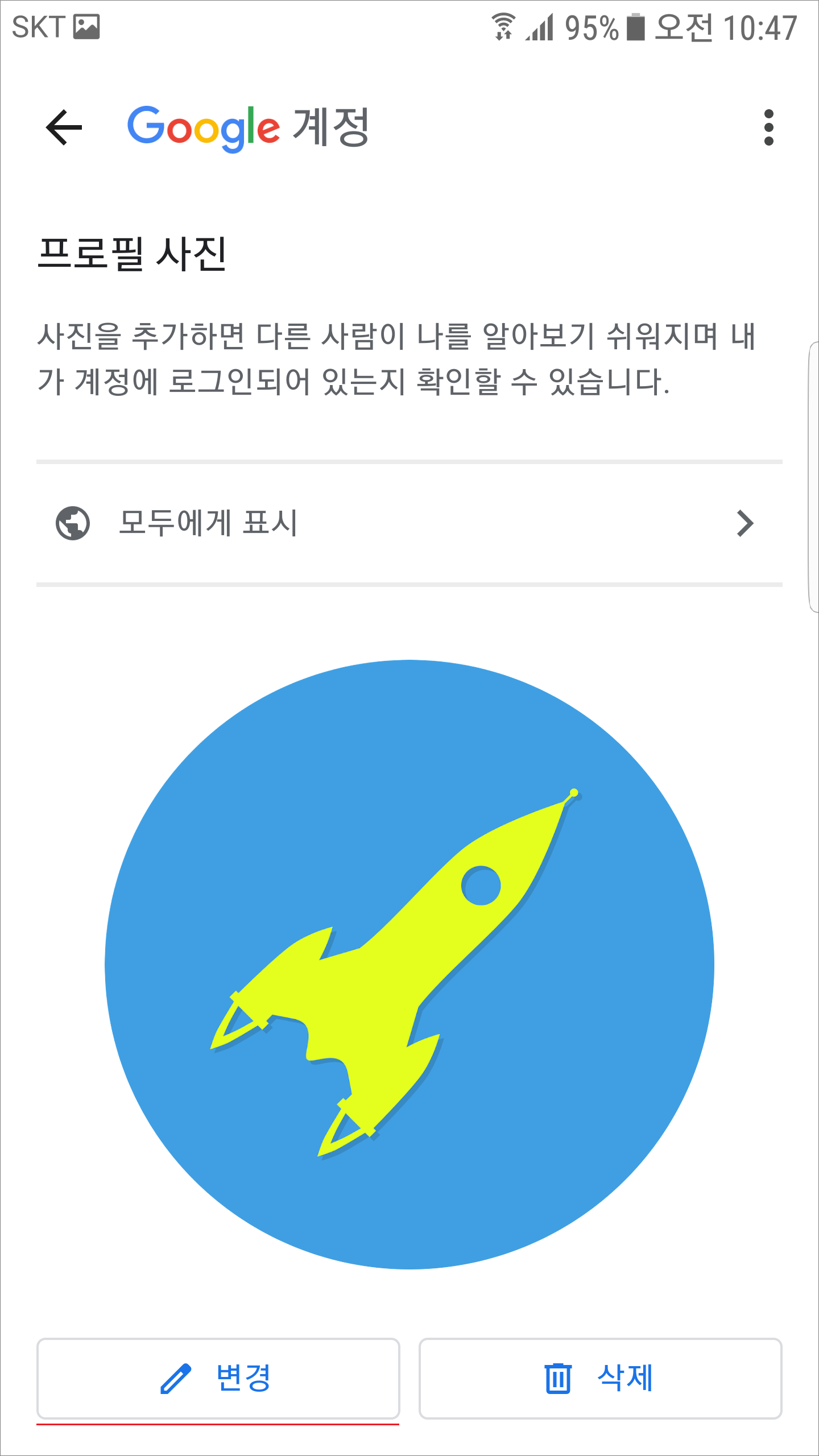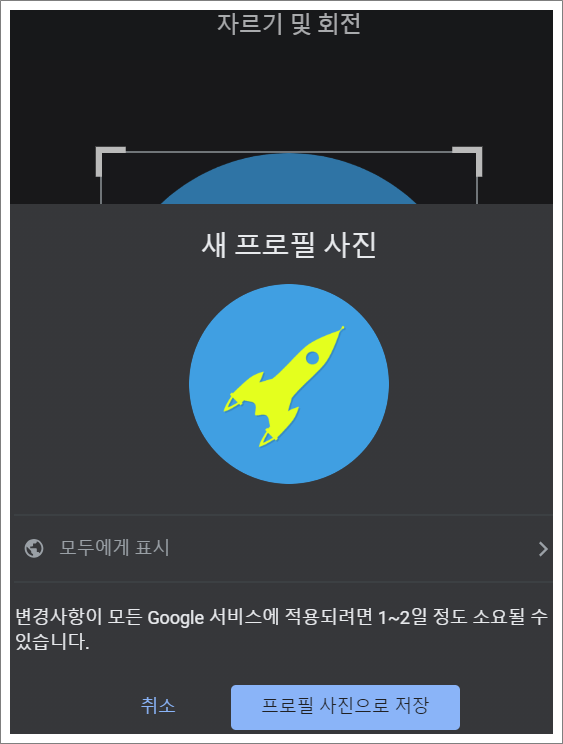 ①. PC에서 프로필 사진을 변경했기 때문에 스마트폰의 구글 프로필 사진도 자동으로 변경되었습니다.