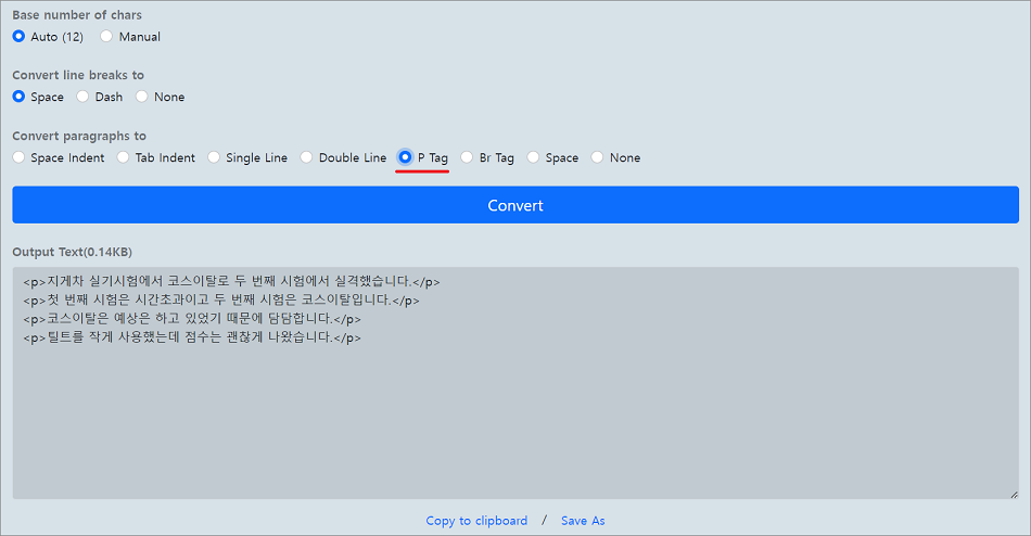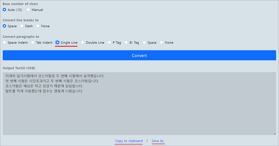 Save As 방법은 선택하면 자동으로 변환된 파일이 다운로드됩니다.