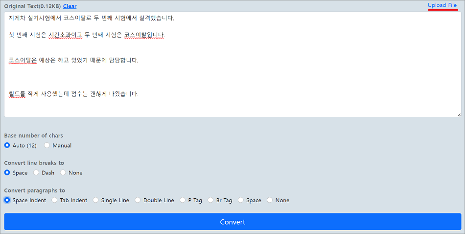 문장을 입력하면 Convert 글자가 회전을 하면서 자동으로 문장이 수정됩니다.