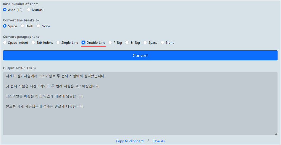 ⑤. Double Line 방식은 텍스트 파일 줄 삽입 방식입니다.