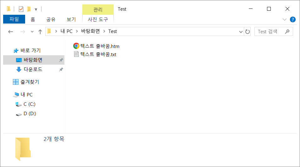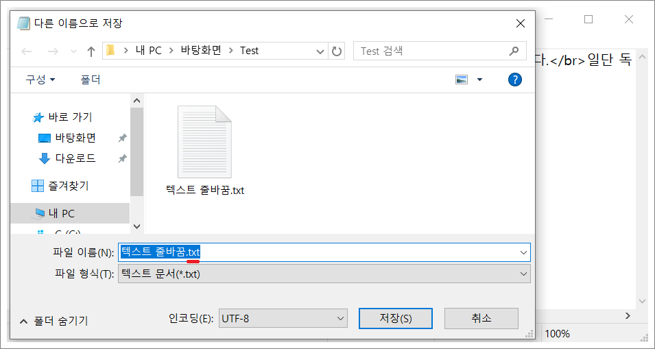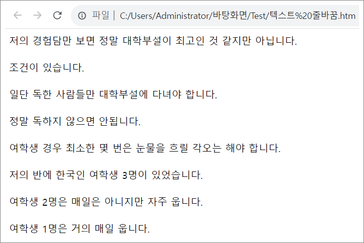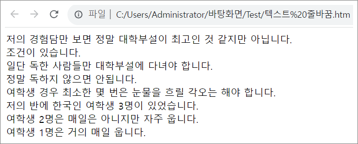 ⑤. 텍스트 줄바꿈.htm 파일로 저장이 되었습니다.