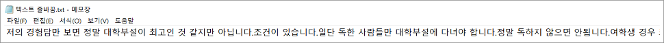 한두 개의 텍스트 내용을 줄 바꾸기 위해서는 프로그램 설치 및 명령어를 외우는 것은 번거롭습니다.