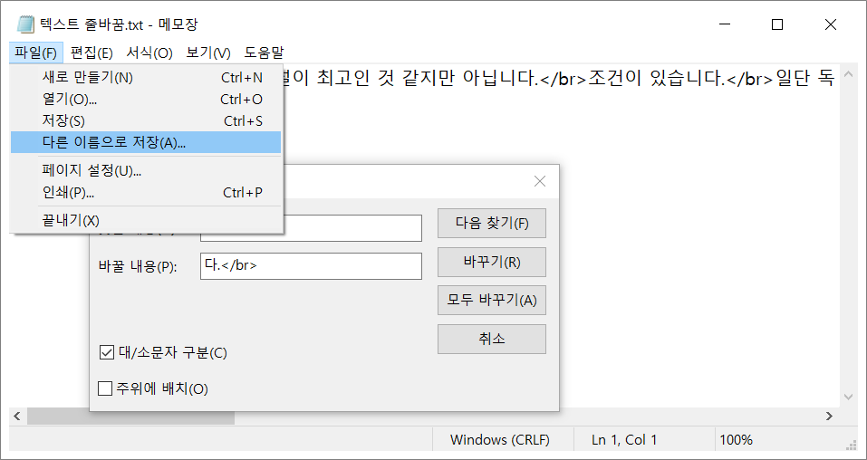 메모장으로 텍스트 내용 줄 바꾸는 방법입니다.