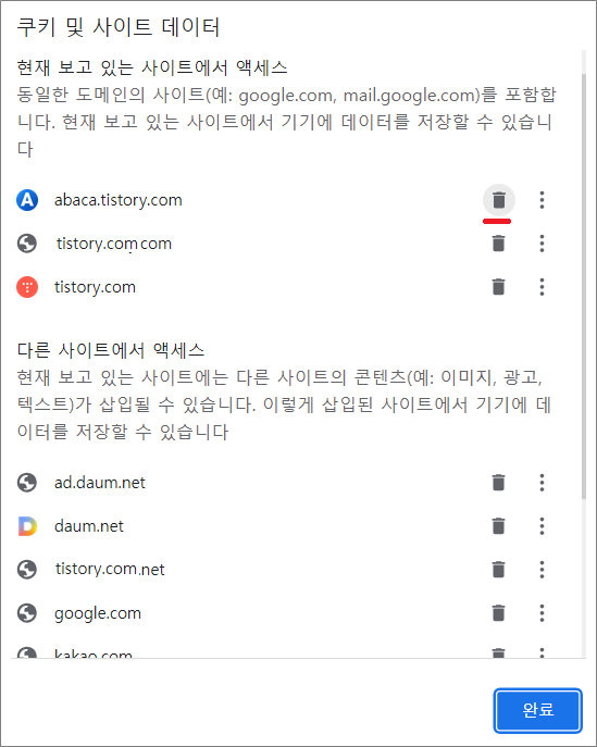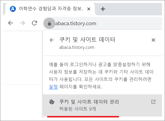 쿠키 및 사이트를 전체삭제할 필요가 없이 특정 사이트의 쿠키 및 사이트 테이터만 삭제하는 방법입니다.