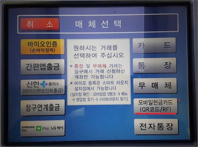 카드없이 현금인출 하는 방법. (모든 은행 ATM에서 QR코드 이용. 신한은행 등)