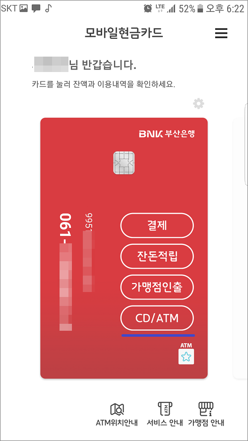 ⑤. 모바일현금카드 실행해서 CD/ATM 선택