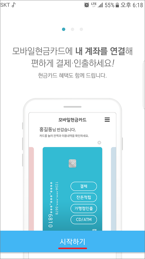 ②. 모바일현금카드 설치한 모습입니다.