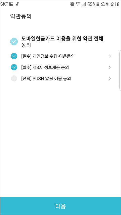 ③. 필수만 체크하고 선택은 체크 안 함.