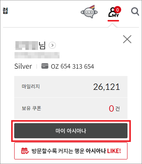 ❉. 아시아나 마일리지 조회하는 방법. ( 소멸 예정 마일리지. 적립 조회)