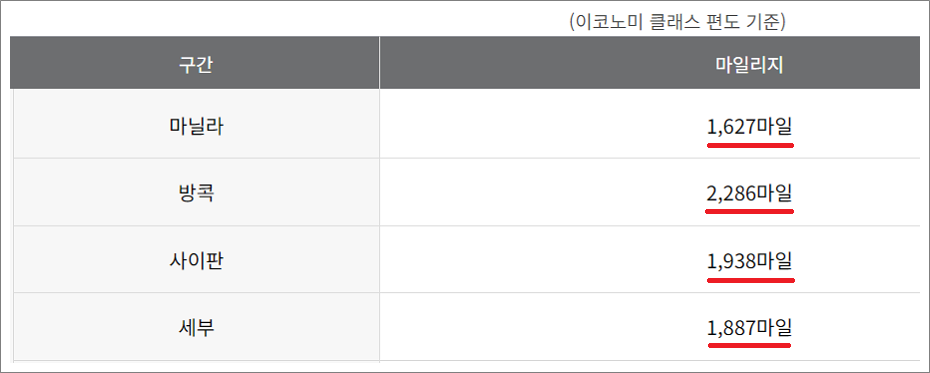 평균적으로 동남아 여행을 가면 왕복 기준으로 4,000마일 적립됩니다.