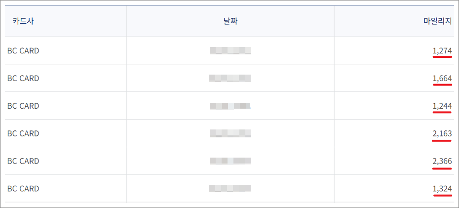 연회비가 낮은 것은 1,000~1,500원에 1 마일 적립됩니다.