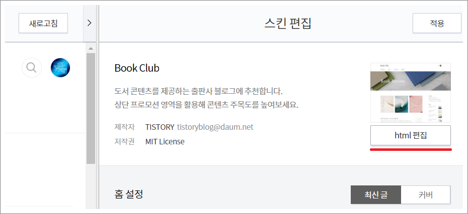 ⑤. html 편집 선택합니다.
