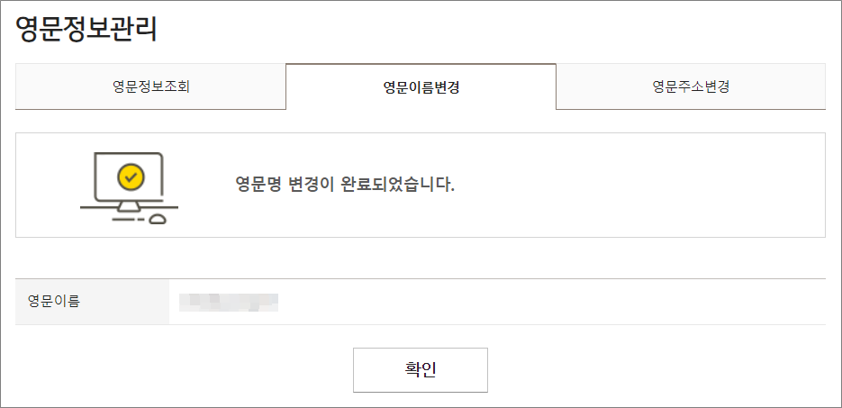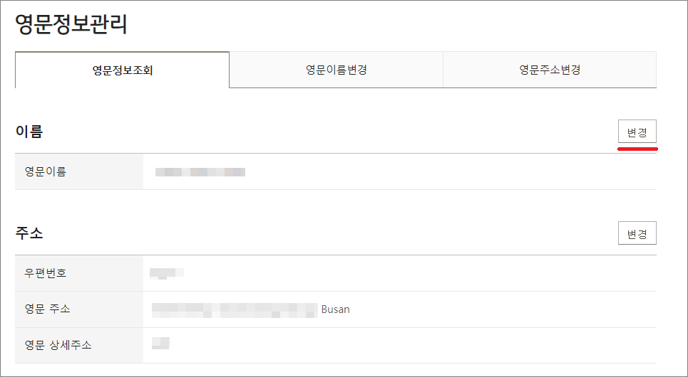 ②. 영문이름을 변경할 수 있습니다.