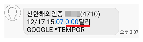 ⑩. 구글 프로필 결제 수단으로 신용카드가 등록된 상태입니다.