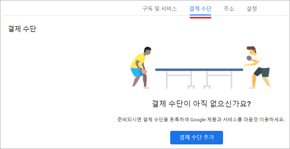 구글 애드센스 및 기타 구글 서비스에 등록하지 않은 상태에서는 카드를 추가해서 구글 결제 프로필 등록해야 합니다.