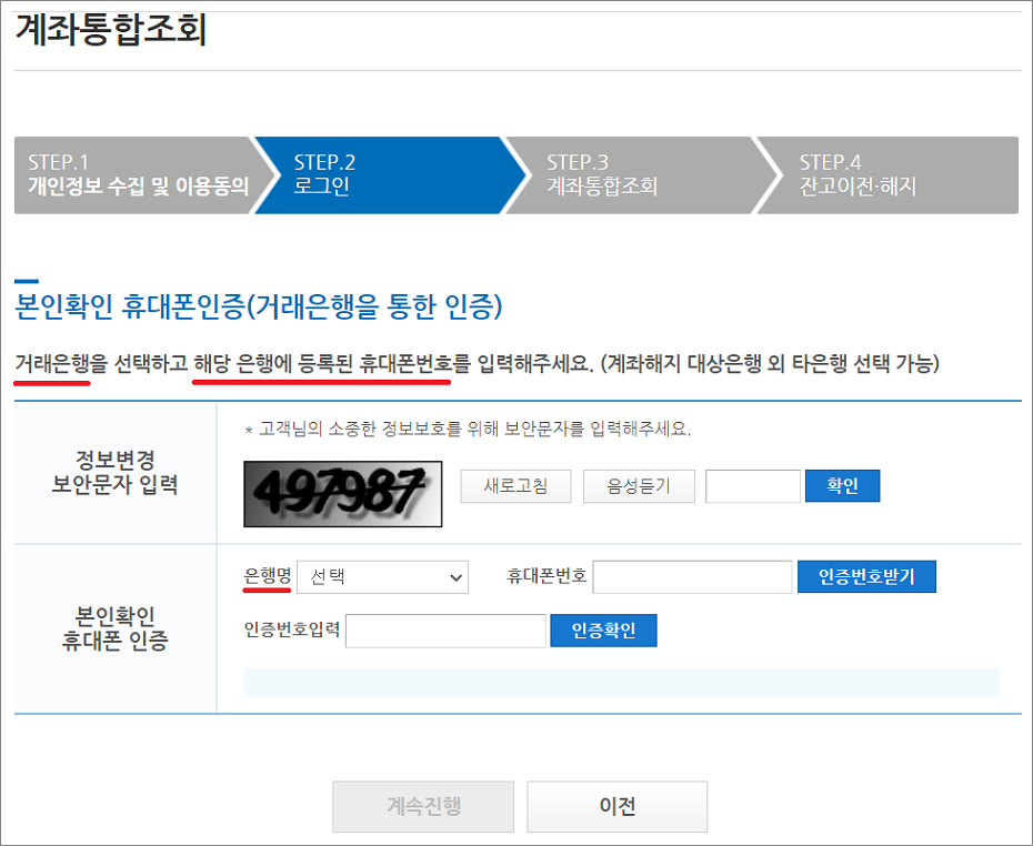⑤. 본인확인 휴대폰 인증은 거래은행 계좌에 등록된 휴대폰 번호 인증입니다.