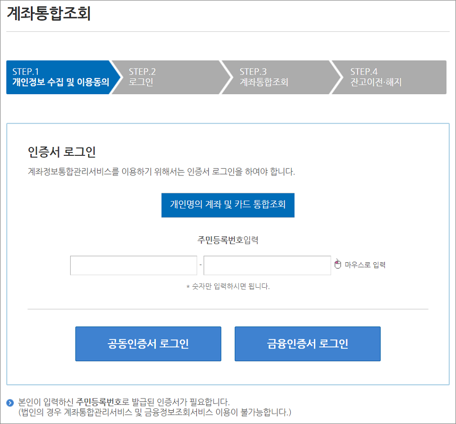 ③. 로그인은 공동인증서 또는 금융인증서가 필요합니다.