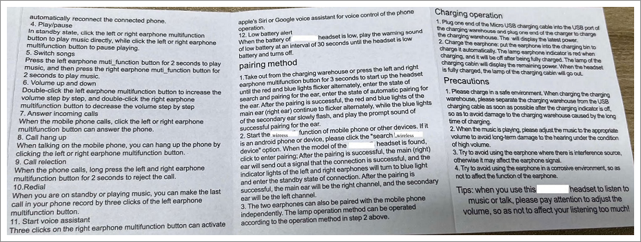 팁: 이 블루투스 이어폰을 사용하여 음악을 듣거나 대화할 때 볼륨을 조절하여 청취에 너무 많은 영향을 미치지 않도록 주의하십시오!