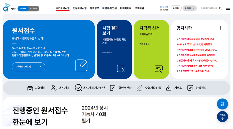 1. 큐넷 Q-net 사이트에서 국가자격시험 선택합니다.