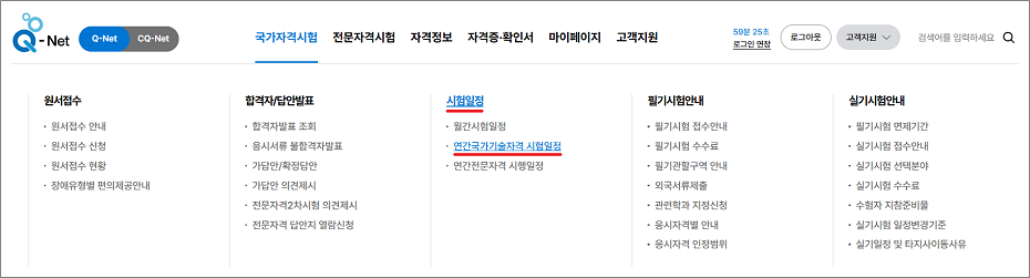 2. 시험일정 > 연간국가기술자격 시험일정 선택합니다.