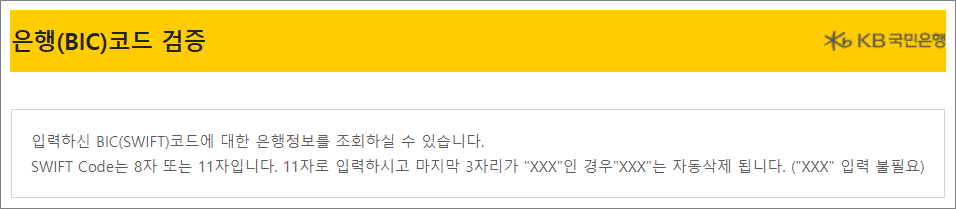 국민은행 SWIFT는 8자리만 입력하면 됩니다.