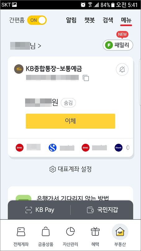 국민은행 KB스타뱅킹으로 영문이름 조회, 확인, 변경하는 방법입니다. 국민은행 영어이름 변경은 KB스타뱅킹을 사용해서 온라인으로 실시간 변경 가능합니다. ①. 메인페이지에서 메뉴 선택합니