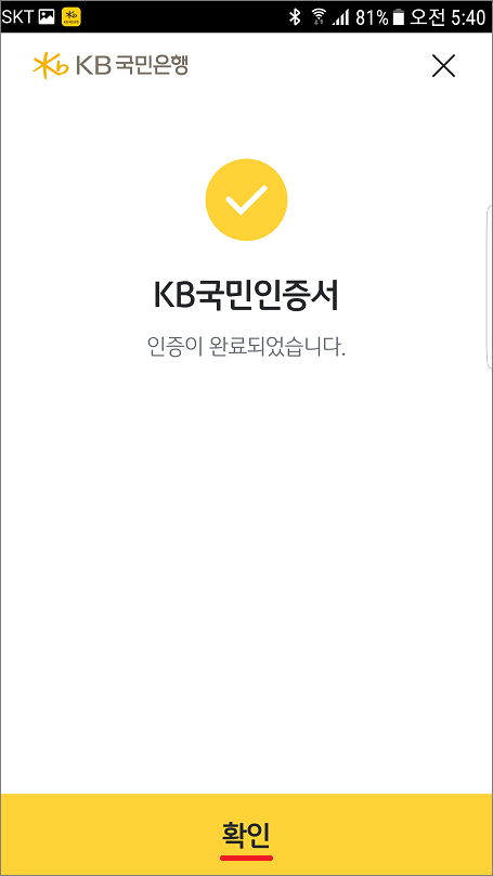 ③. 모바일의 KB스타뱅킹에서 KB국민인증서 인증을 해야 합니다.
