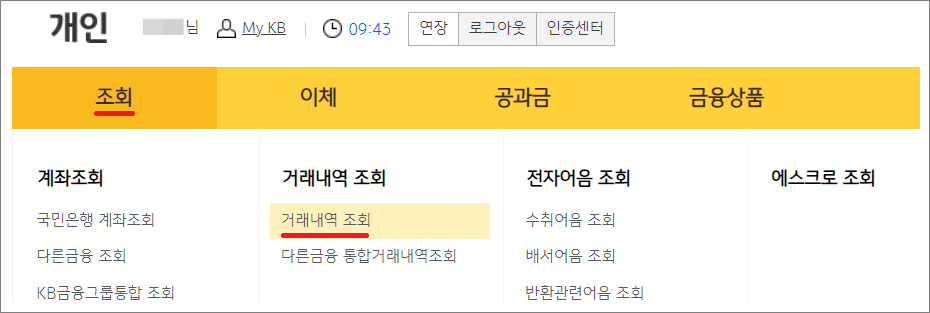 ❉. KB국민인증서 로그인 거래내역 조회 방법.