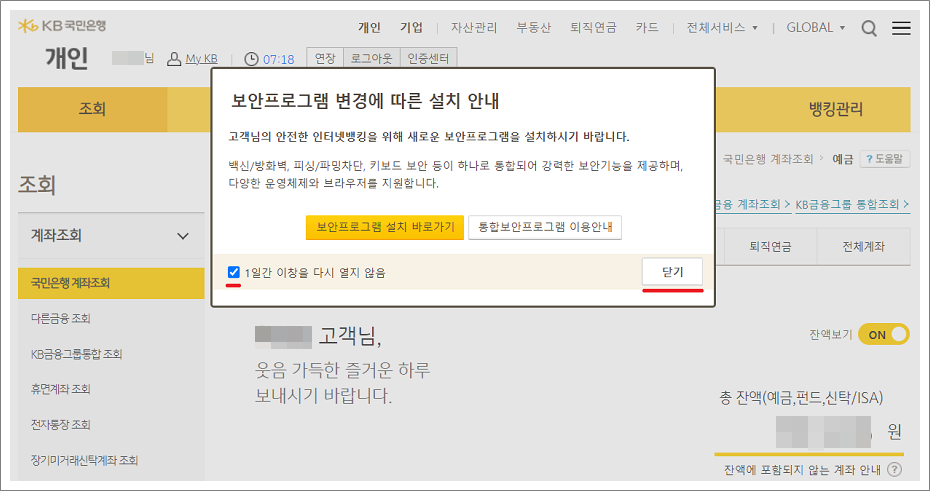국민은행 KB국민인증서로 PC에 로그인하면 인터넷 뱅킹 이용할 때 보안프로그램 설치하지 않아도 됩니다.