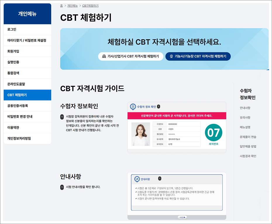 2. CBT 자격시험 가이드 내용이 나옵니다.