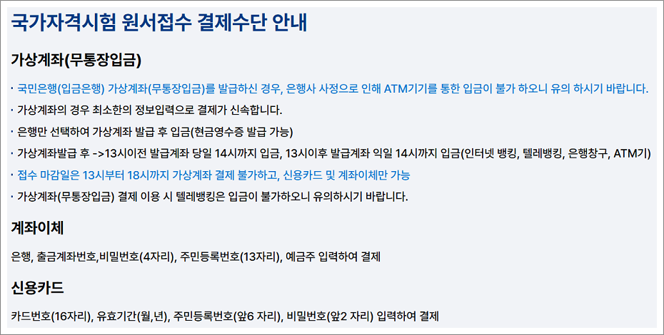 2025년부터는 원서 접수 이후에 결제하기 때문에 가상계좌를 이용해도 다른 결제수단과 동일합니다.