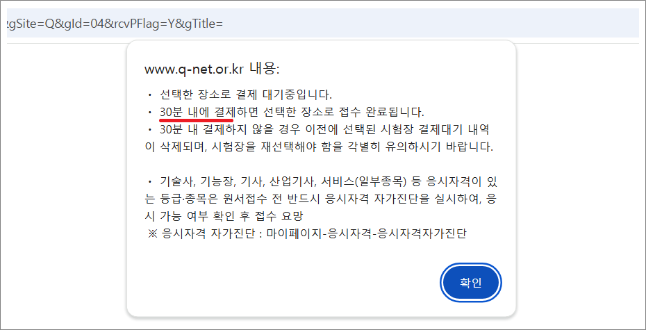 10. 팝업창으로 결제기한과 주의사항 안내 나옵니다.