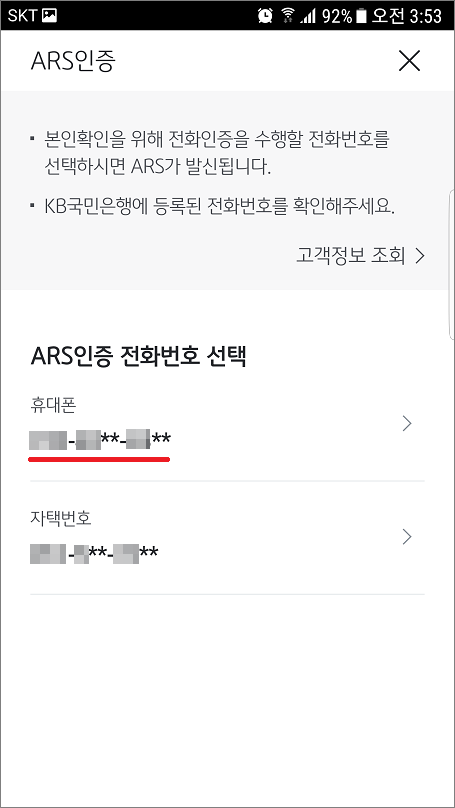 ⑬. 전화가 오면 승인번호 입력하고 확인 선택.