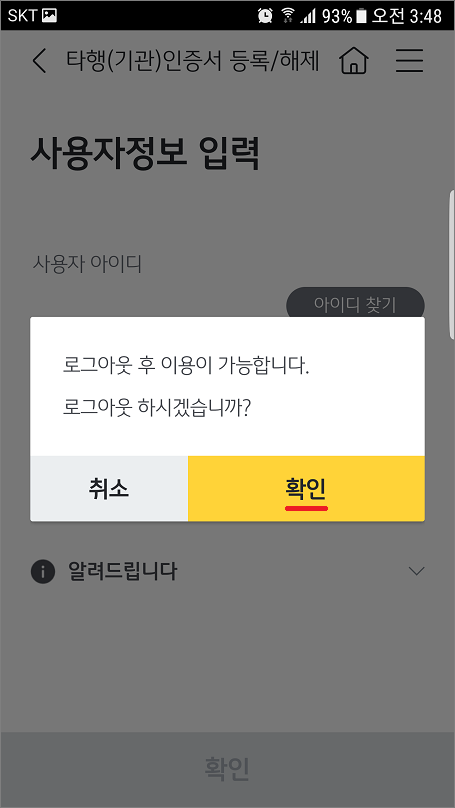 모바일 타행 인증서 등록하면 PC에서 타행 인증서 등록 없이 바로 사용가능합니다.