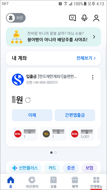 신한은행 신한 쏠 SOL뱅크 설치되어 있어야 합니다.
