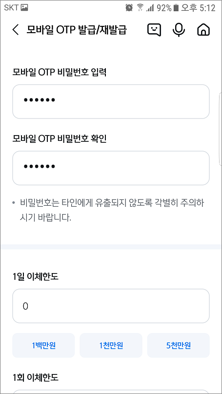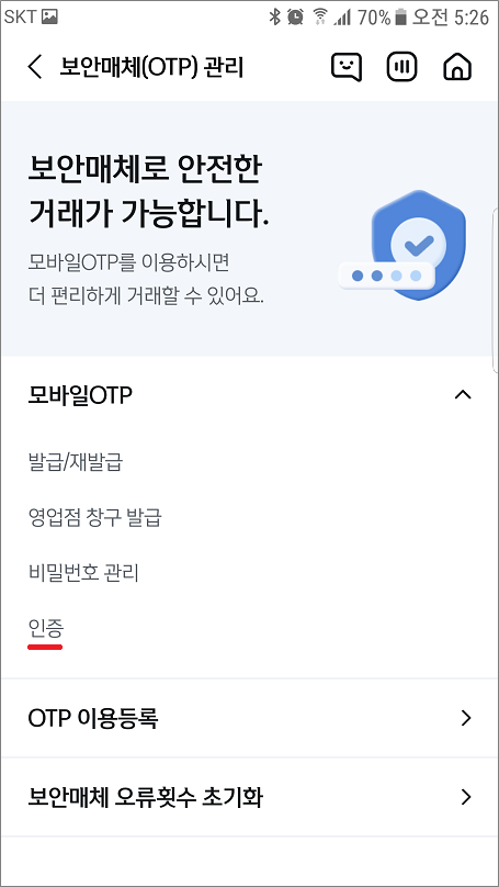 모바일 OTP 발급을 받으면 기존에 사용하던 보안카드 및 실물 OTP는 사용하지 못합니다.
