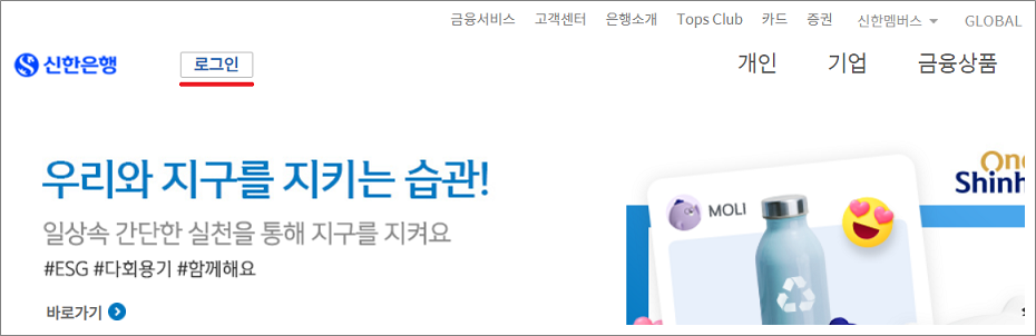 ❉. 신한은행 쏠패스 로그인 방법 (PC)