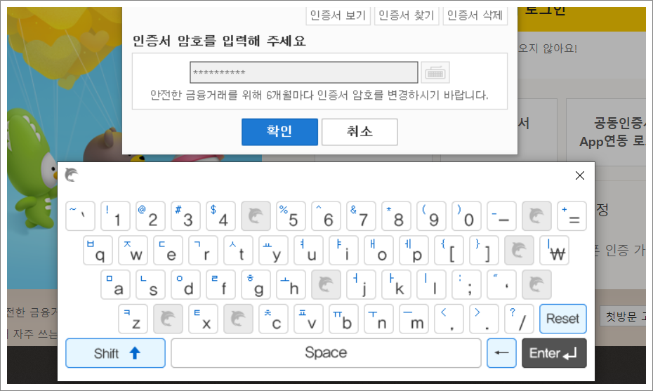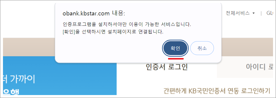 KB국민인증서 로그인은 보안프로그램을 설치 안 해도 됩니다.