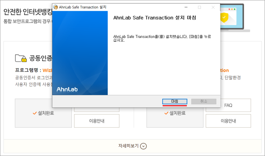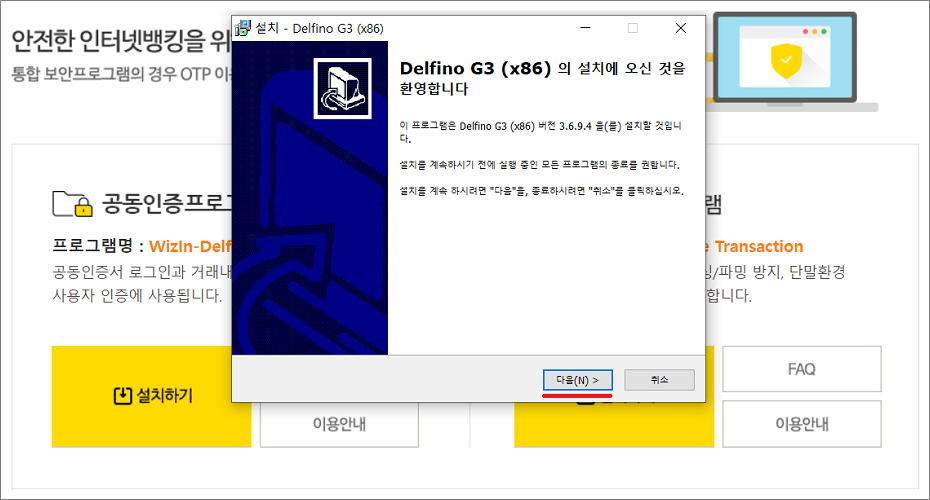 해당 파일을 선택하면 보안프로그램이 설치됩니다.
