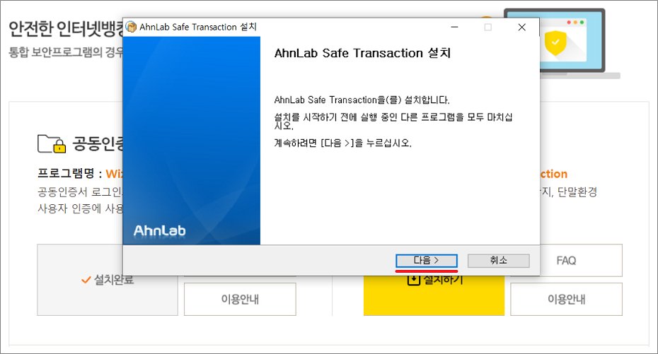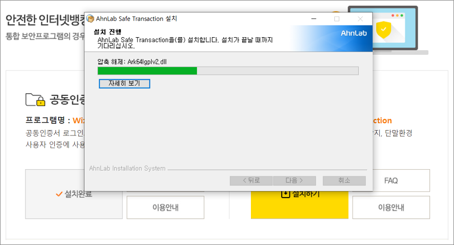 ⑧. AhnLab Safe Transaction(astx_setup.exe) 설치 모습입니다.