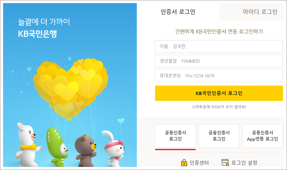 국민은행 공동인증서 로그인 방법 (PC)