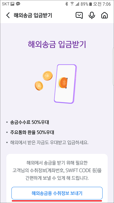 ⑤. 해외송금용 수취정보 보내기 선택합니다.