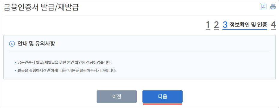 ⑫. 금융인증서 발급받기 전의 본인 확인이 완료되었습니다.